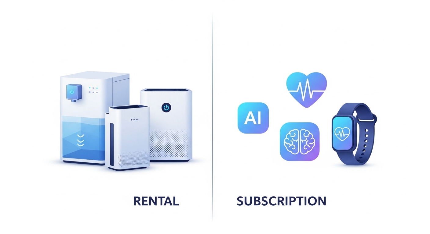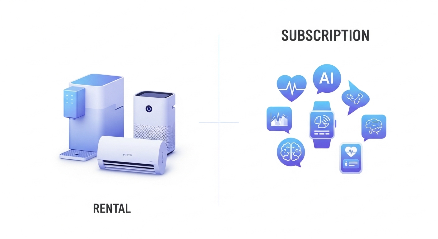 렌탈형은 정수기, 공기청정기 같은 환경가전을 빌려 쓰는 방식이고, 구독형은 AI 기반 맞춤형 웰니스 케어가 결합된 새로운 모델입니다.